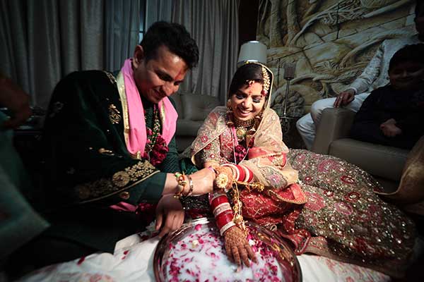 We ourselves didn't know we were in love. It was all confessed through a truth and dare session when we were in Grade 9. We were 13, infatuated and yes madly in love. From him filling my water bottles to me making his practical files. It just seemed to right. Just want to tell all our teachers that here we are, from FLAMES, to wedding cards, our names shall always be written together.